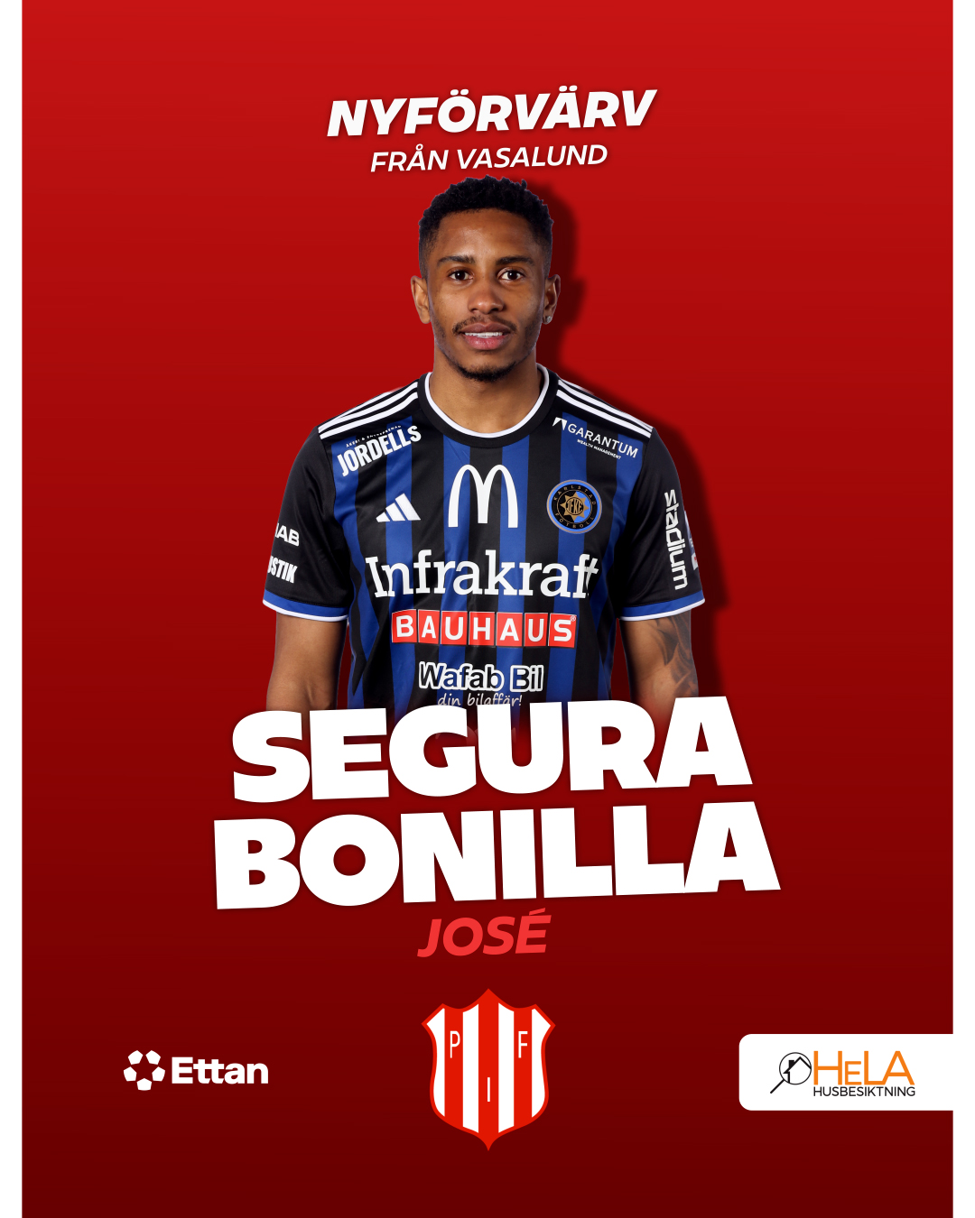 Piteå IF har gjort klart med ett nyförvärv inför kommande säsong. Den offensivt skicklige forwarden José Segura Bonilla är klar för klubben och ansluter till laget från Vasalund. Under fjolårssäsongen blev det totalt sju mål och tre assist för José. 2024 slutade han på en delad fjärdeplats i skytteligan då han noterades för 14 mål i Karlstad fotboll som var hans klubb då.